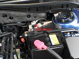 助手席側はBピラー下の後部座席側に、運転席側はBピラー下の前部座席側にインバータを貼り付ける。 貼り付ける前にボディー側の汚れを拭き、アルコールで油分を取ってから、貼り付ける。 |