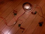 インバータとダブルコードをギボシで結線する。 インバータのツルツルの面(コードが出いないほう)に両面テープの方側を剥がし、張っておく。 インバータ2個とダブルコードは3線をよじって半田で固定し、ギボシをカシメる。 結構太くなるので、ギボシのカバーが入れにくいがギリギリ入る。 完成するとこんな感じ 車では接続だけになるよう、また、簡単に取り外しできるように多くギボシを使用したが、ギボシを車で取り付ける場合は、いくつかギボシを省略可能。 |