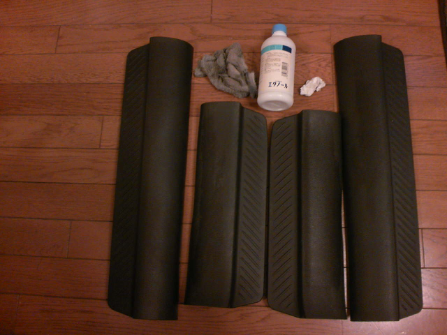 スカッフプレートの汚れを拭き、アルコールで油分を取る。 |