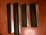 スカッフプレートを外す。 外側に爪があり、これで固定されている。 指を外側端に入れ、バキバキっと剥がす。 |