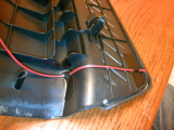 スカッフプレートのフチで折り返して裏側に入れるためにコードが当たるフチと裏側の途中にある1mm位の敷居をコードの太さ分削って溝を作る。 これで、踏まれてもコードが踏まれず、きれいに裏にコードを入れられる。 |