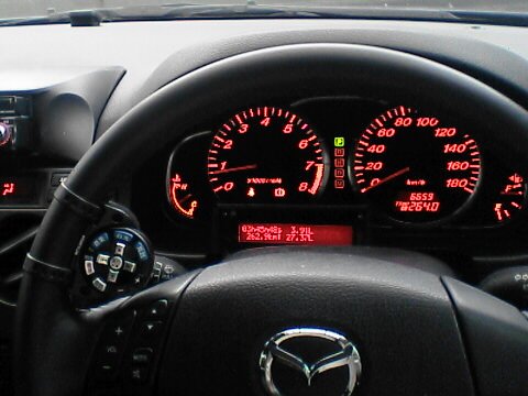 | 7 | 一応完成したが、メーターが赤、センターパネルも赤、ナビも赤の中に緑はやはり合わないのでした。 しかし秋葉原には売っていなかったなぁ。 | ||