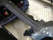 最後尾が4箇所でとめられている。これを抜く。 バンパーを後方に引き抜けば、取り外し完了。 |