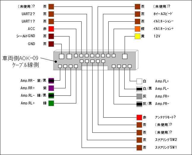 本体側コードは極力加工したく無いので、AOK-09添付のケーブルから信号を取り出しています。
