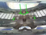 | ボンネットを開け、バンパーを止めている2本のリベットと2本のビスを外す。 |