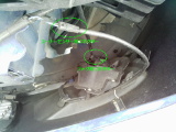ファスナーで止められていたカバーをめくり、タイヤ上部のビスをプラスドライバーで外す。 同様に助手席側もファスナー外しおよびカバー無いのビス外しをする。 |