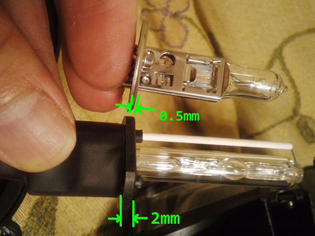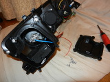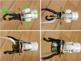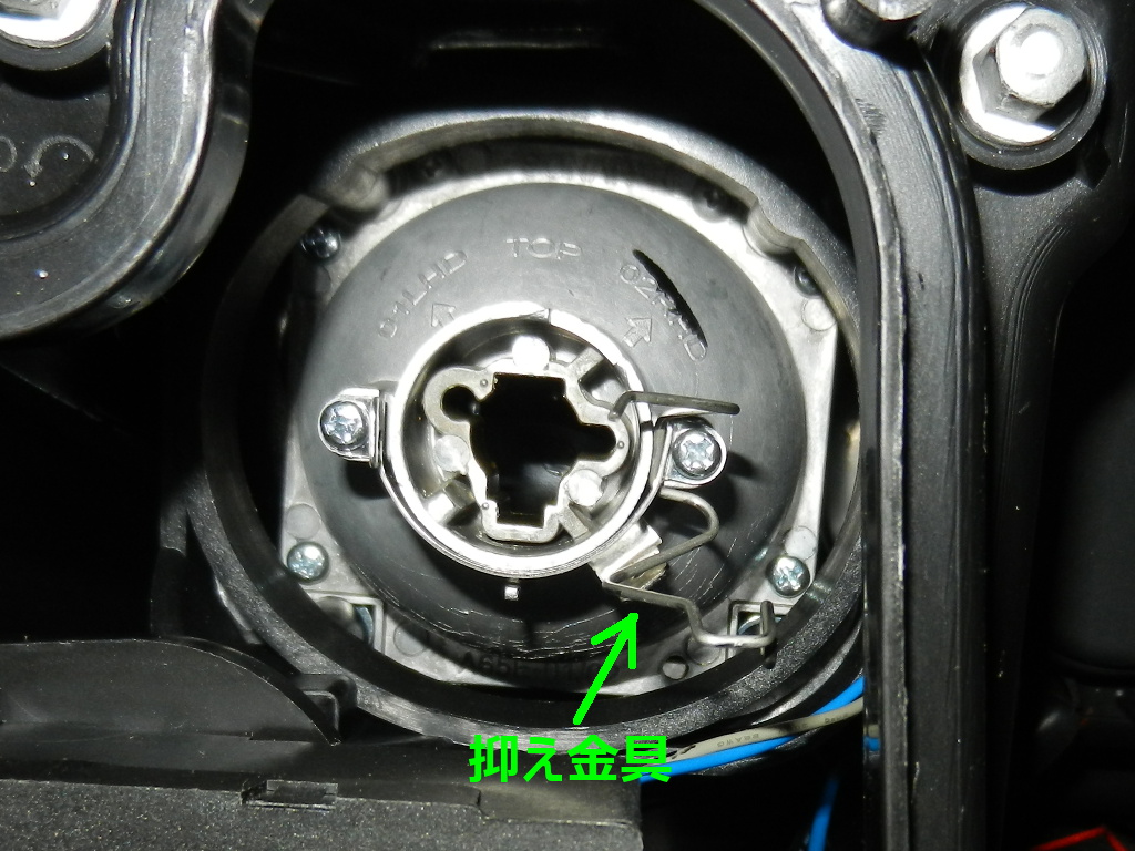 HIDバーナーをハロゲンと交換する。 ハロゲンを抑えている金具※をラジオペンチ2個使って若干広げ、HID仕様に加工してから交換する。 ※この金具、残念ながらHIDだと厚みがあり抑えきれない。 |