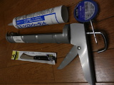 隙間にシリコンシーラントをコーキングガンで埋めていく。 数十分後、シーリングテープを剥がす。 1週間硬化するのを待つ。 |