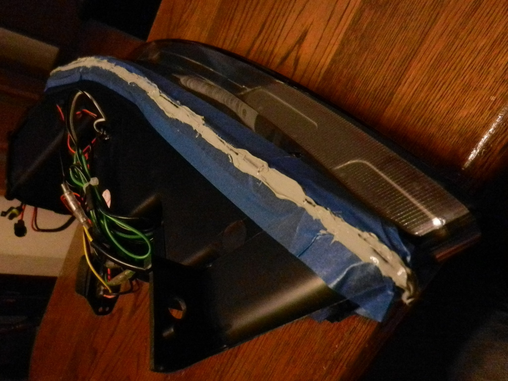 レンズ部分と本体部分の隙間を挟むようシーリングテープを張る。 |