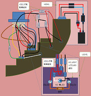 ヘッドライト側青線と黒線をHIDの赤線と黒線に接続する。