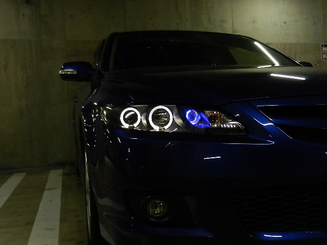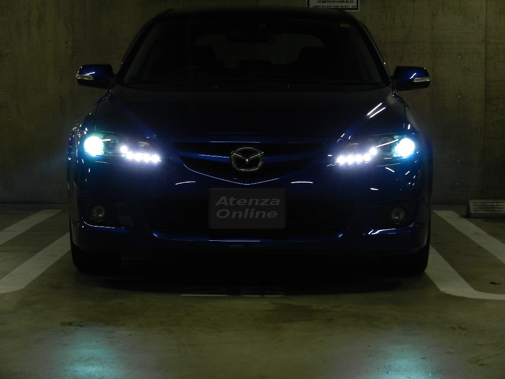 | 消灯 | デイライト点灯 (フォグを青LED化) | スモール点灯 (LED 5発) | ロービーム点灯 (HID化) |
