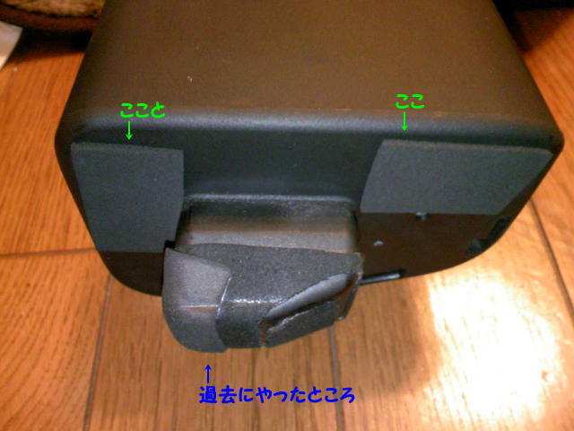 でっぱり(凸部分)は覆うように0.5mmシートを加工して張る。 ここは標準(Dラーだったかな?)で張ってあるが、劣化する。 |